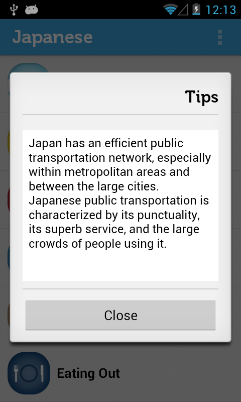 تقربر مختصر عن تطبيق الاندرويد لتعلم اليابانية "Learn Japanese Phrasebook"